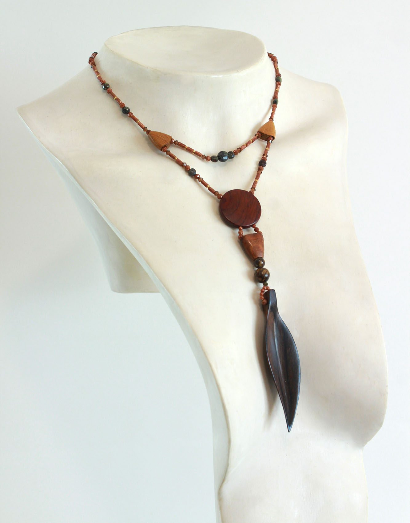Inspiré par la nature, ce collier en bois exotique sculpté fait partie d’une collection que vous pouvez découvrir en suivant ce lien.