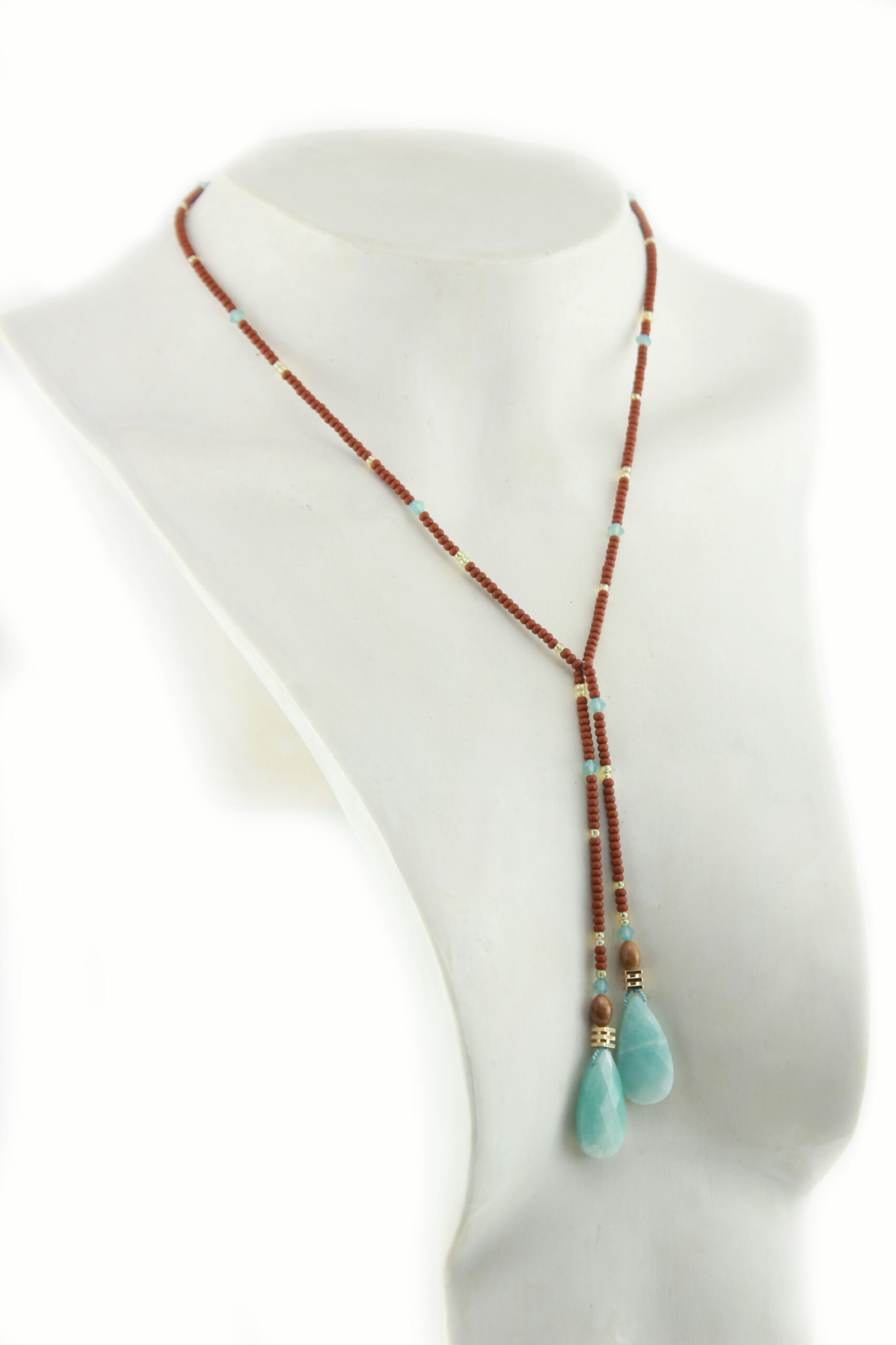 Lasso Amérindien en Pierre naturelle d'Aigue-Marine – Bijou Artisanal et Inspiré