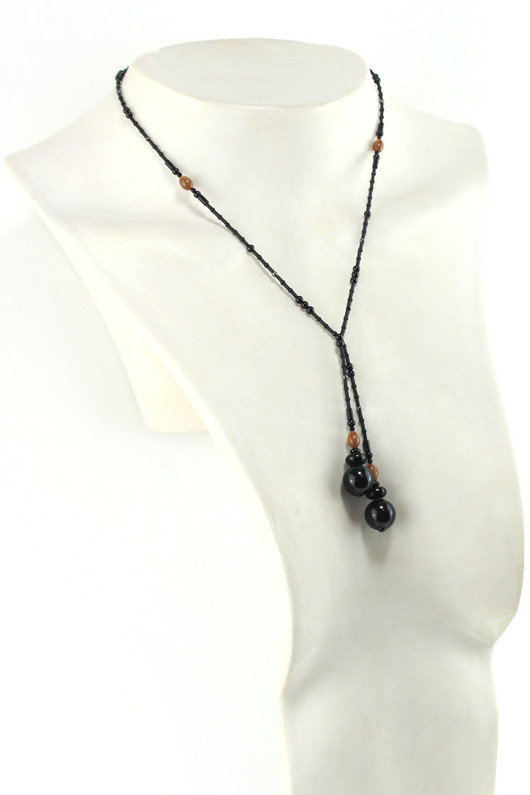 Collier Rituel en perles naturelles d’Obsidienne & Bois de Kuka – Collier artisanal