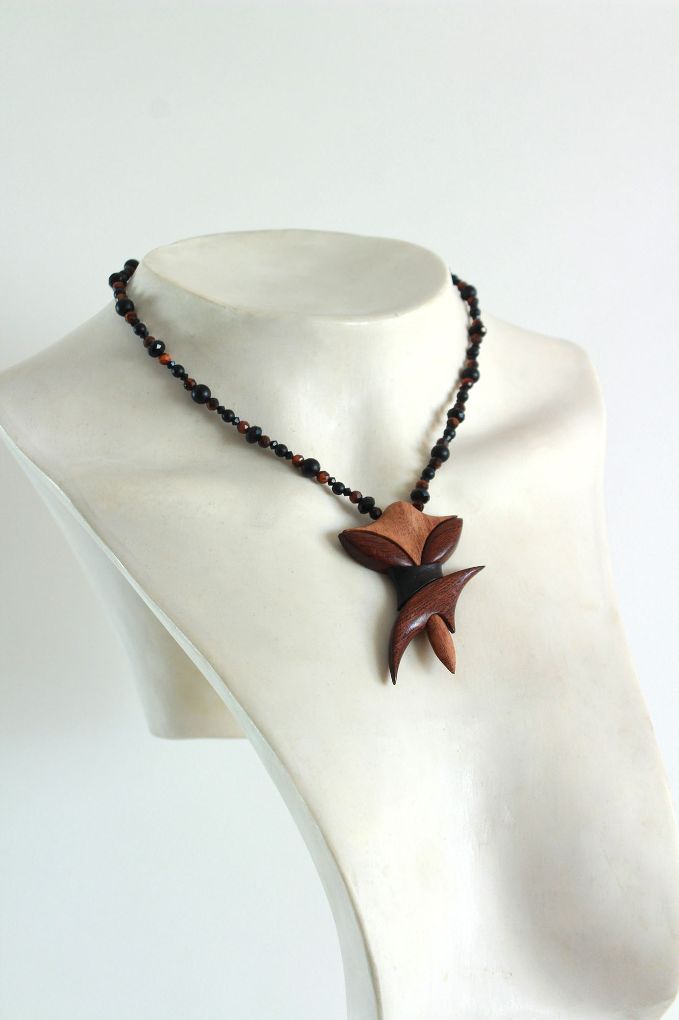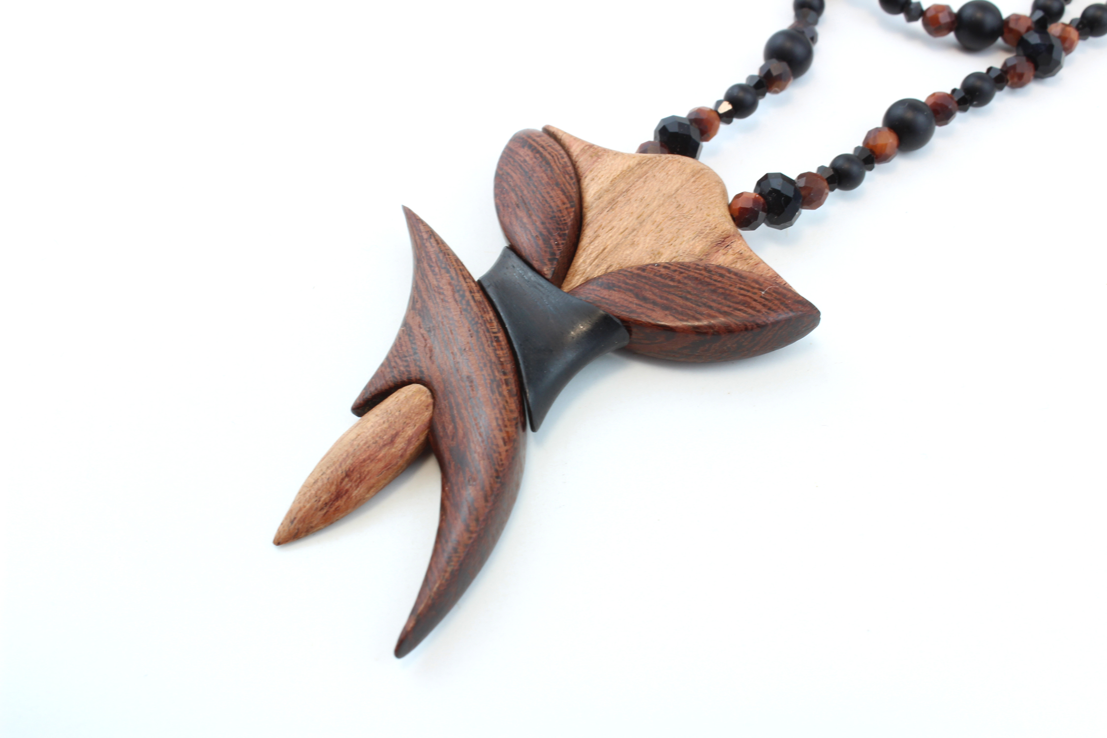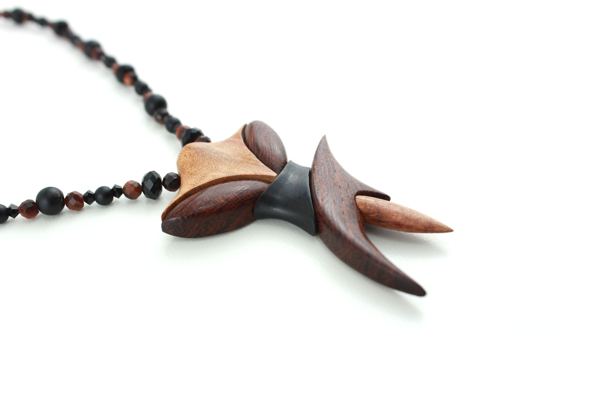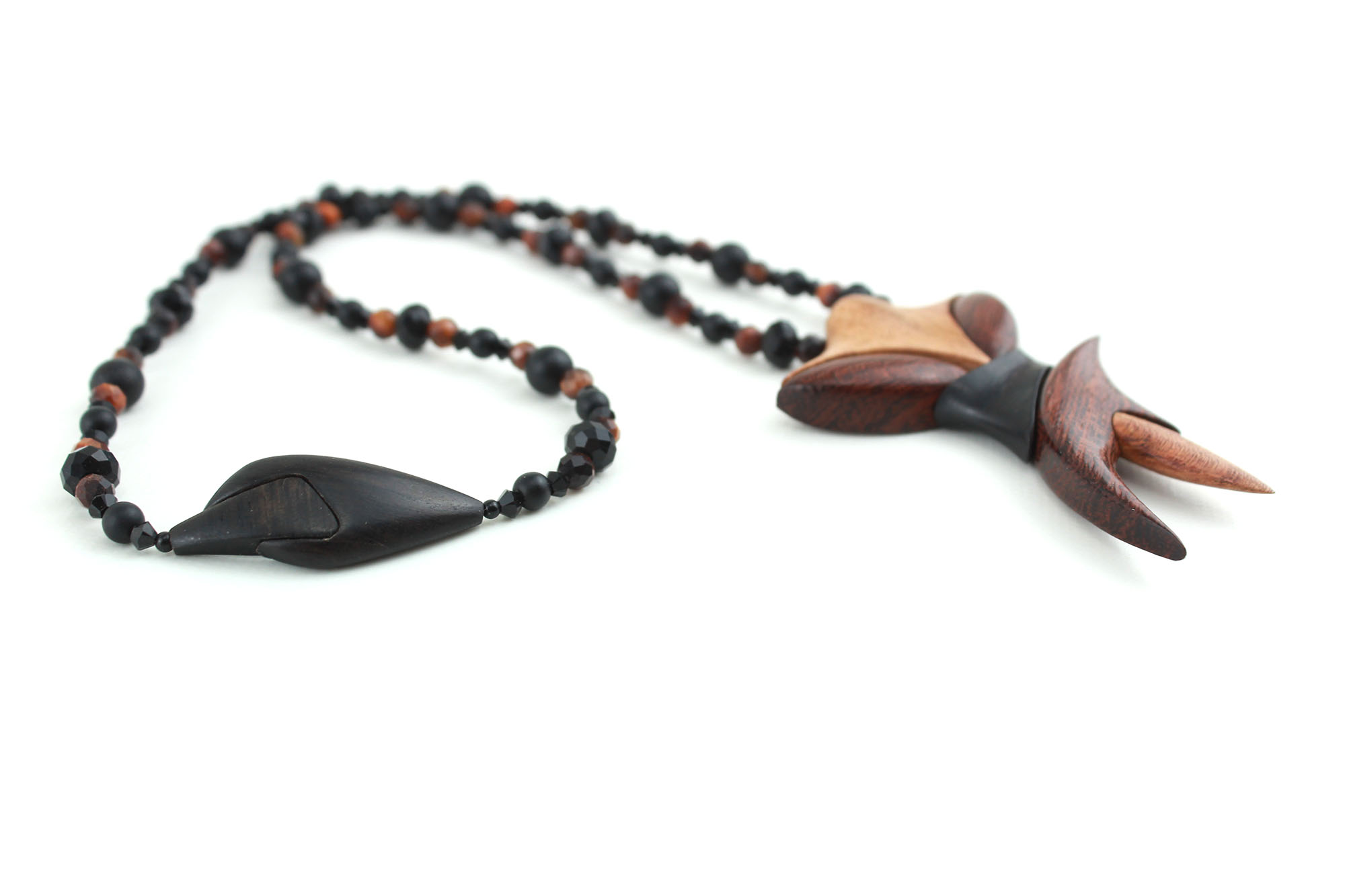 Collier design en bois exotiques & perles naturelles – Bijou unique fait main