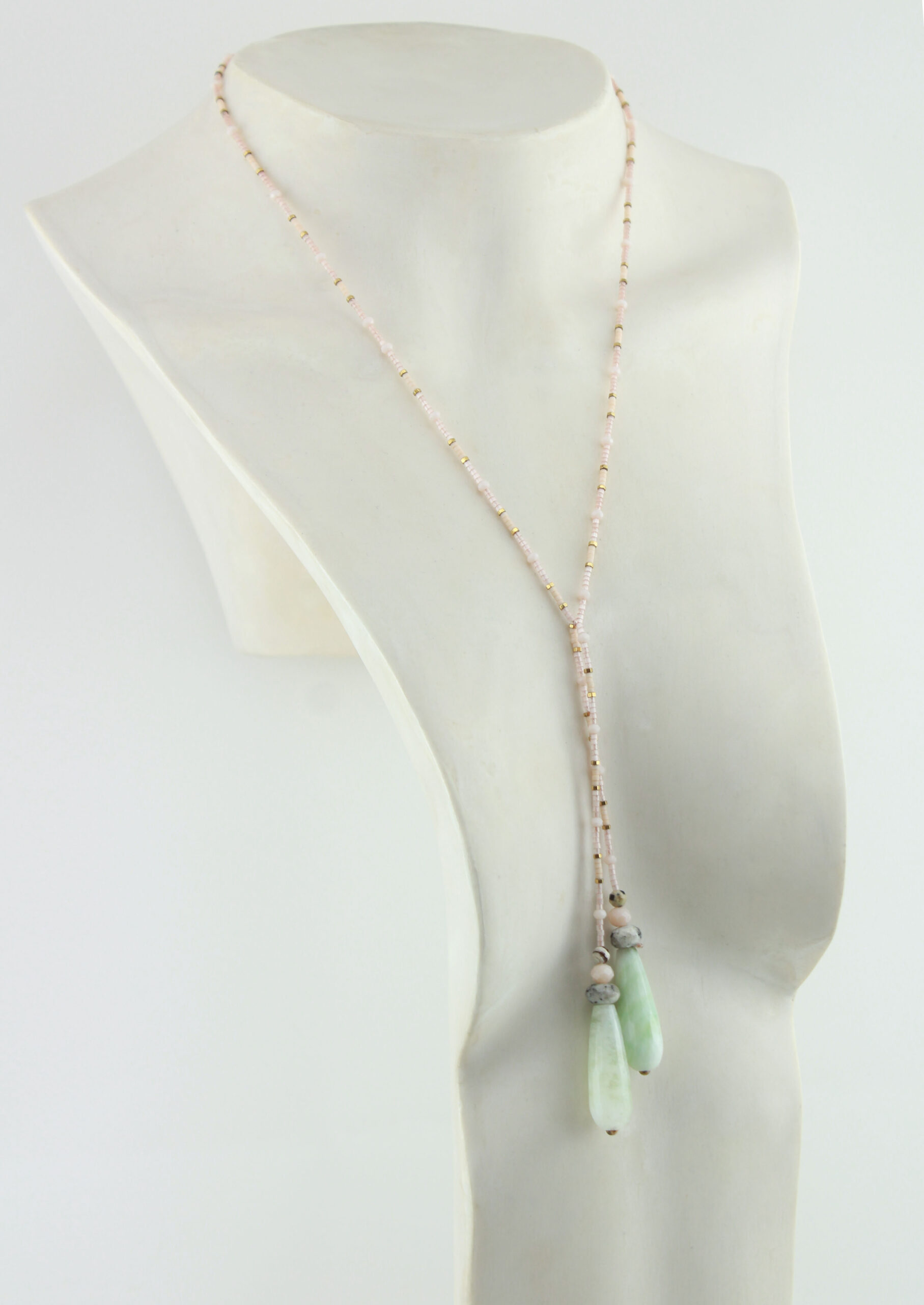 Lariat raffiné en Perles fines de Jade et de Mica – Élégance et Douceur Minérale