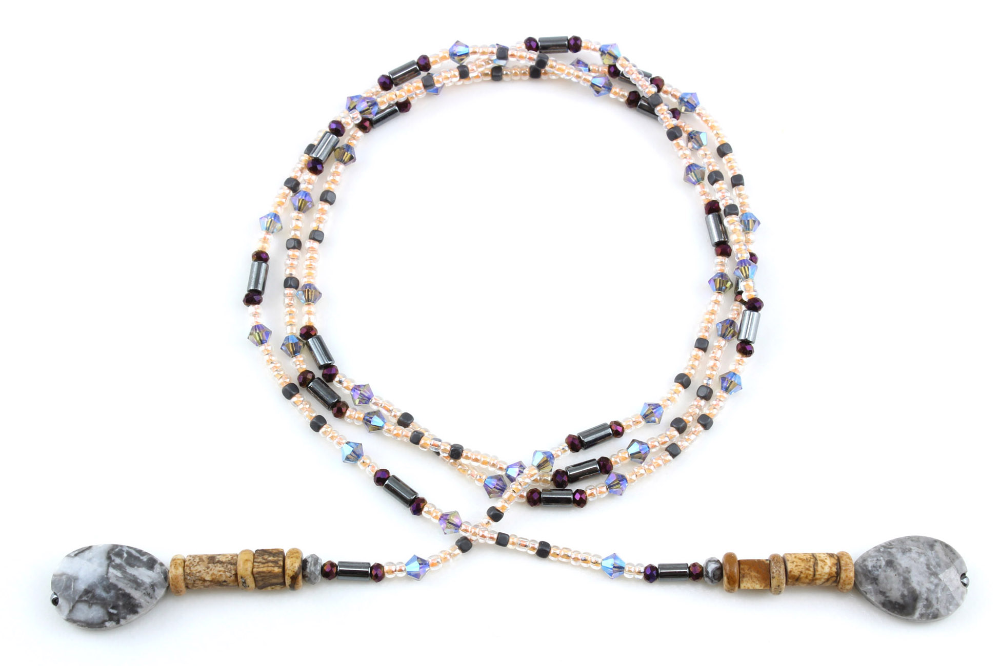 Chaque lariat est conçu avec des finitions impeccables : aucun nœud visible, des perles minutieusement sélectionnées une à une pour l’harmonie des lignes, et un système à nouer innovant qui en fait un bijou unique sur le marché.