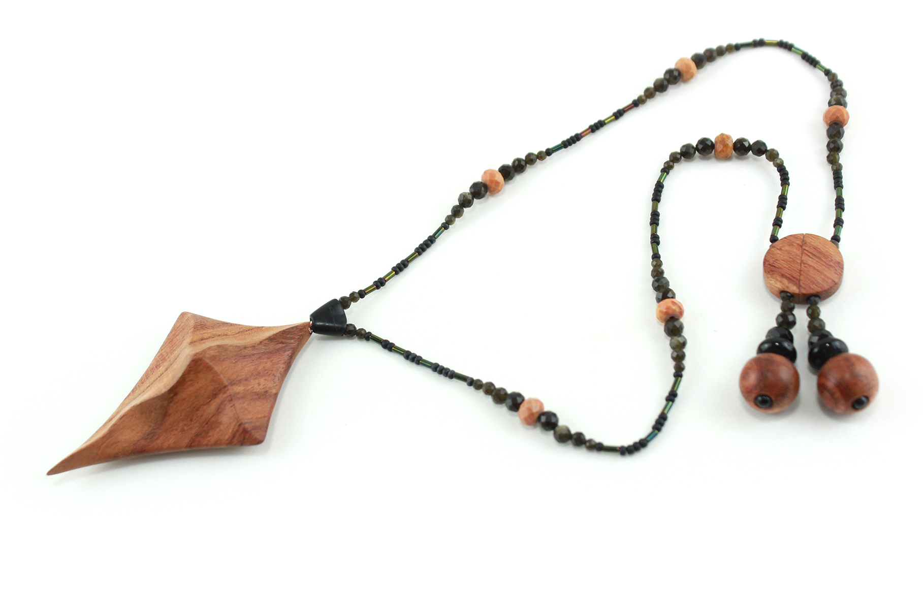 Collier avec croix primitive en bois de Rose africain en bois – Bijou artisanal en bois sculpté