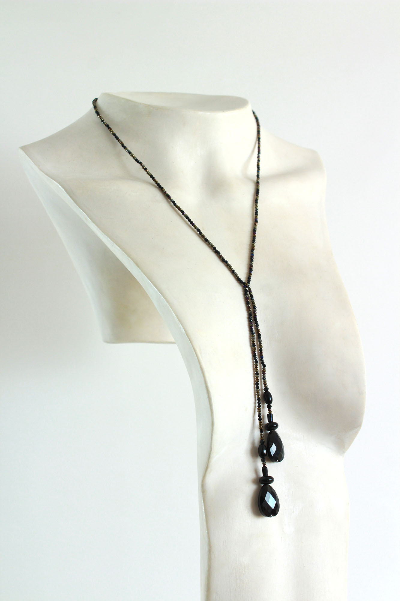 Entre mystère & raffinement pour ce lasso noir et métal en perles naturelles d’Onyx