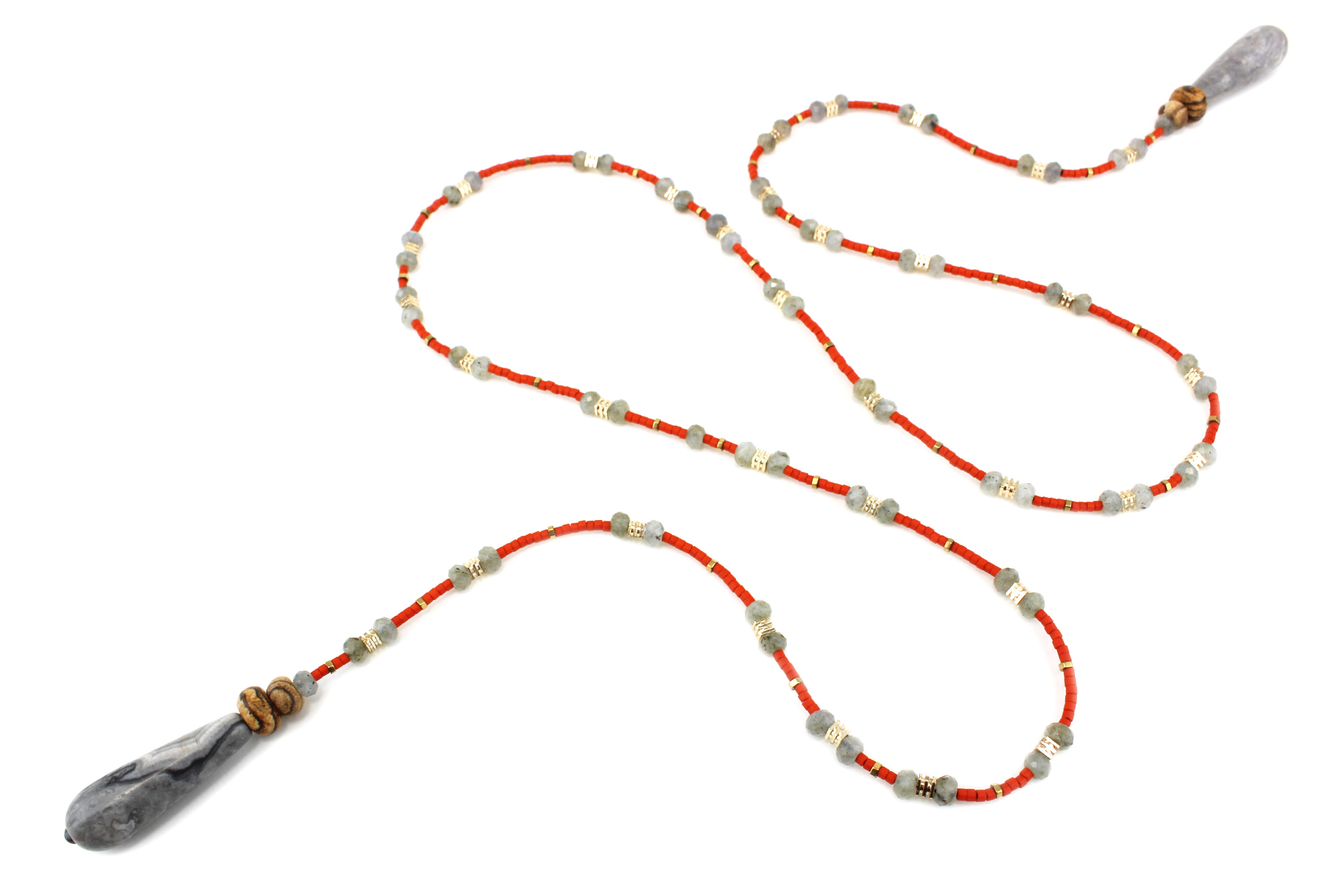 Collier talisman orange et gris – Un bijou qui danse entre la terre et le feu