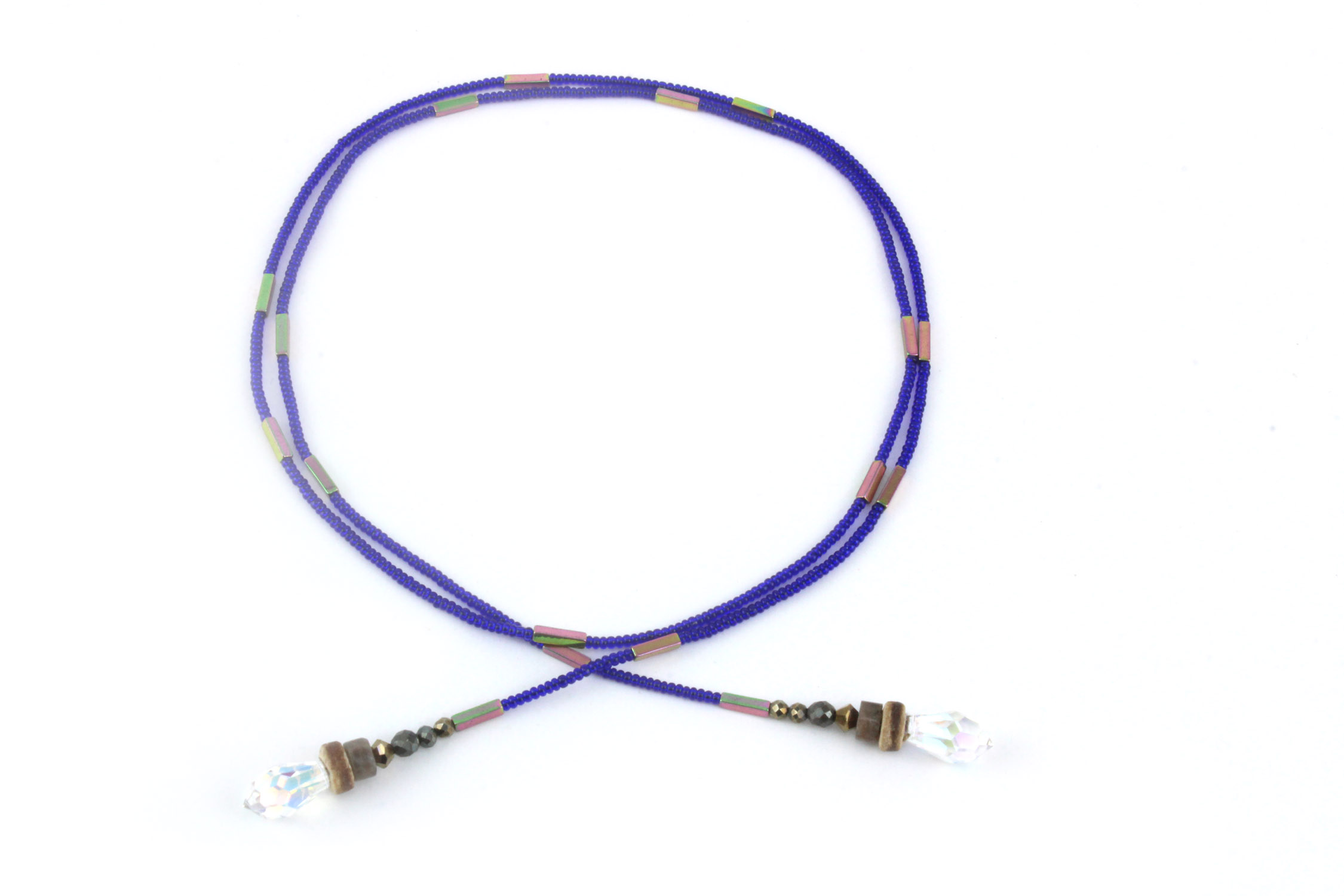 Le collier en cristal bleu et argent fait partie d’une collection unique. Découvrez-la en détail qui. Vous souhaitez en savoir plus sur ce modèle ? Venez échanger avec nous dans notre espace dédié.