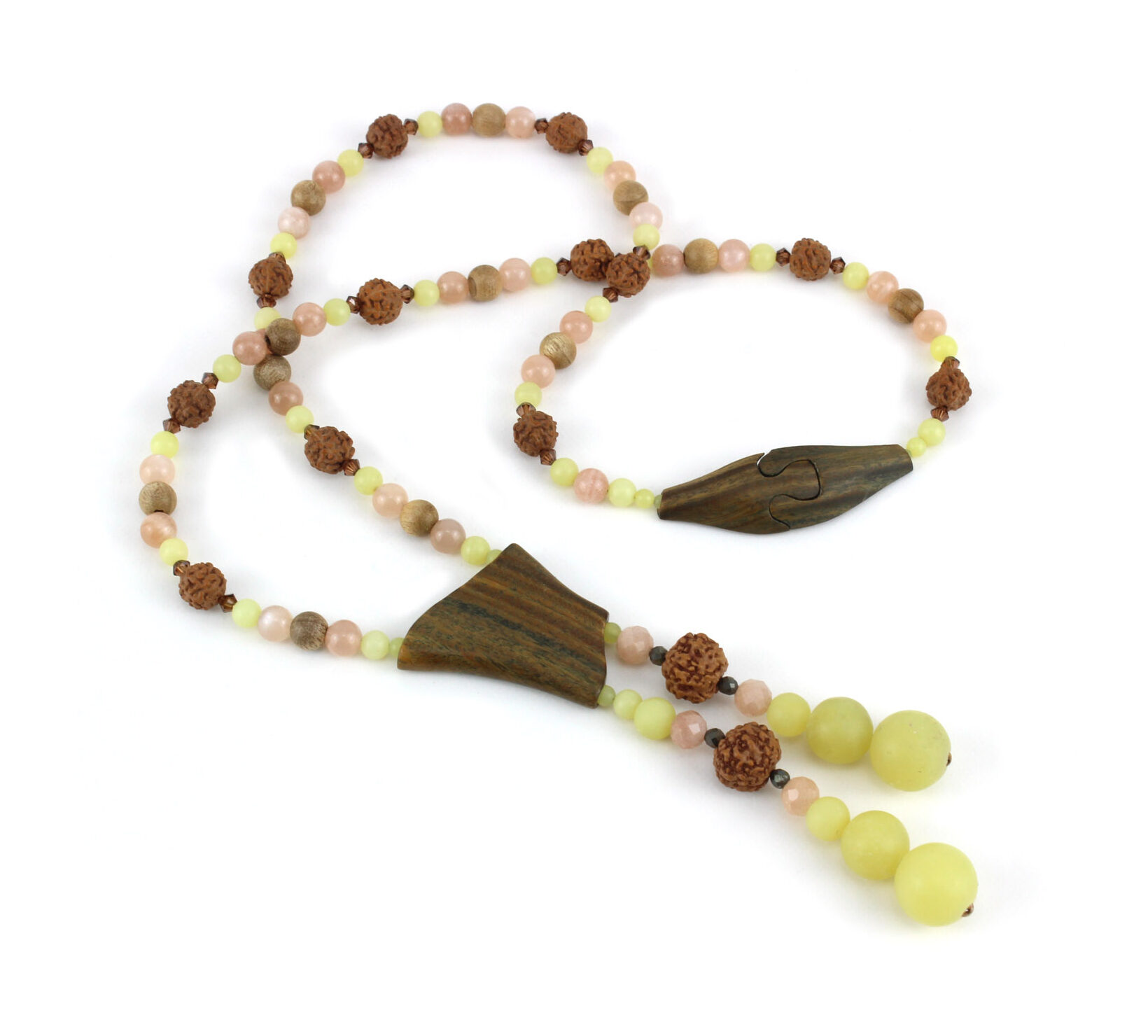 Collier cravate naturel en bois sacré de Palo Santo et perles de Calcite – Bijou artisanal en bois sculpté