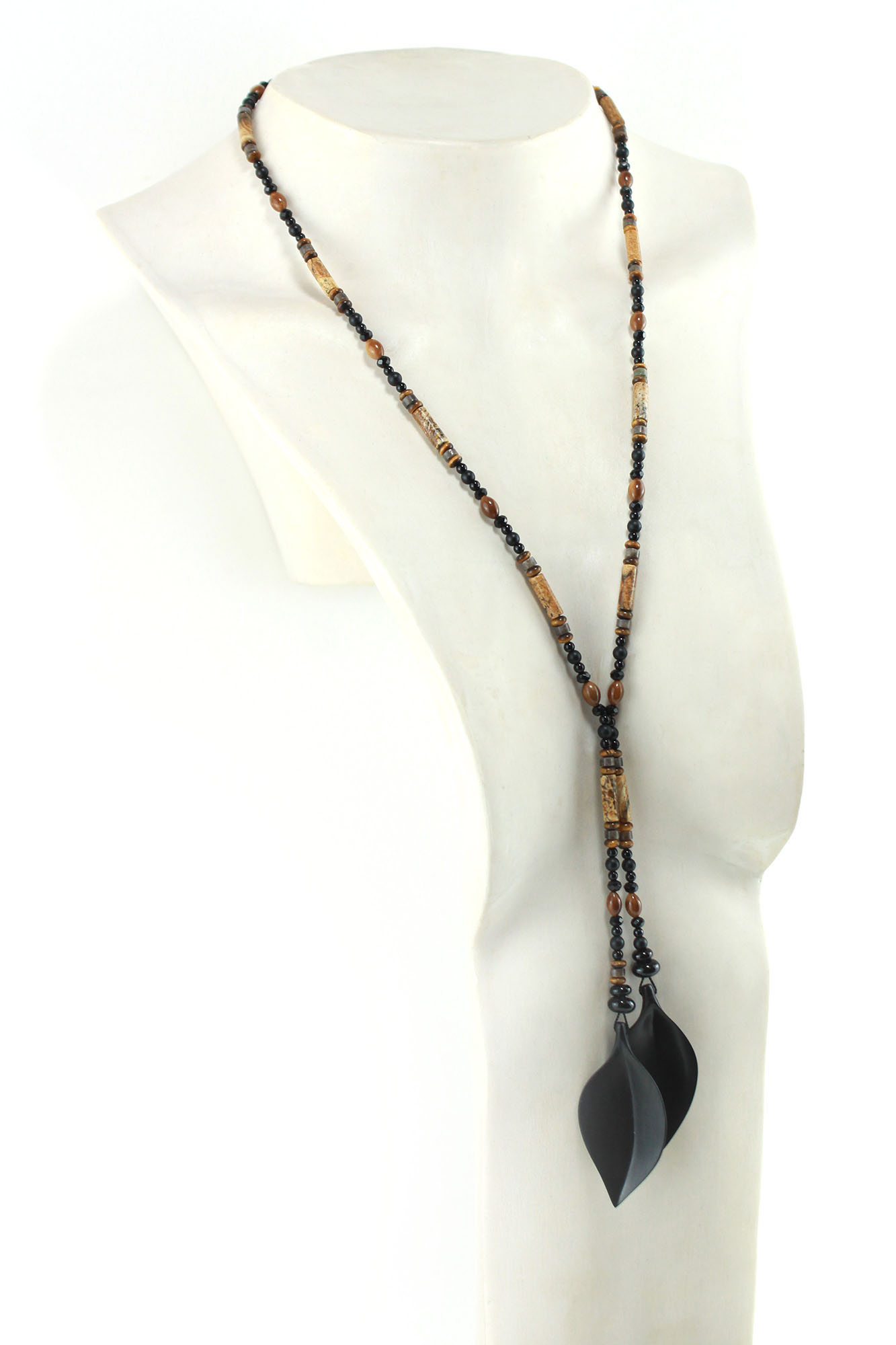 Collier lariat en bois d’Ébène & Jaspe paysage – Élégance et profondeur