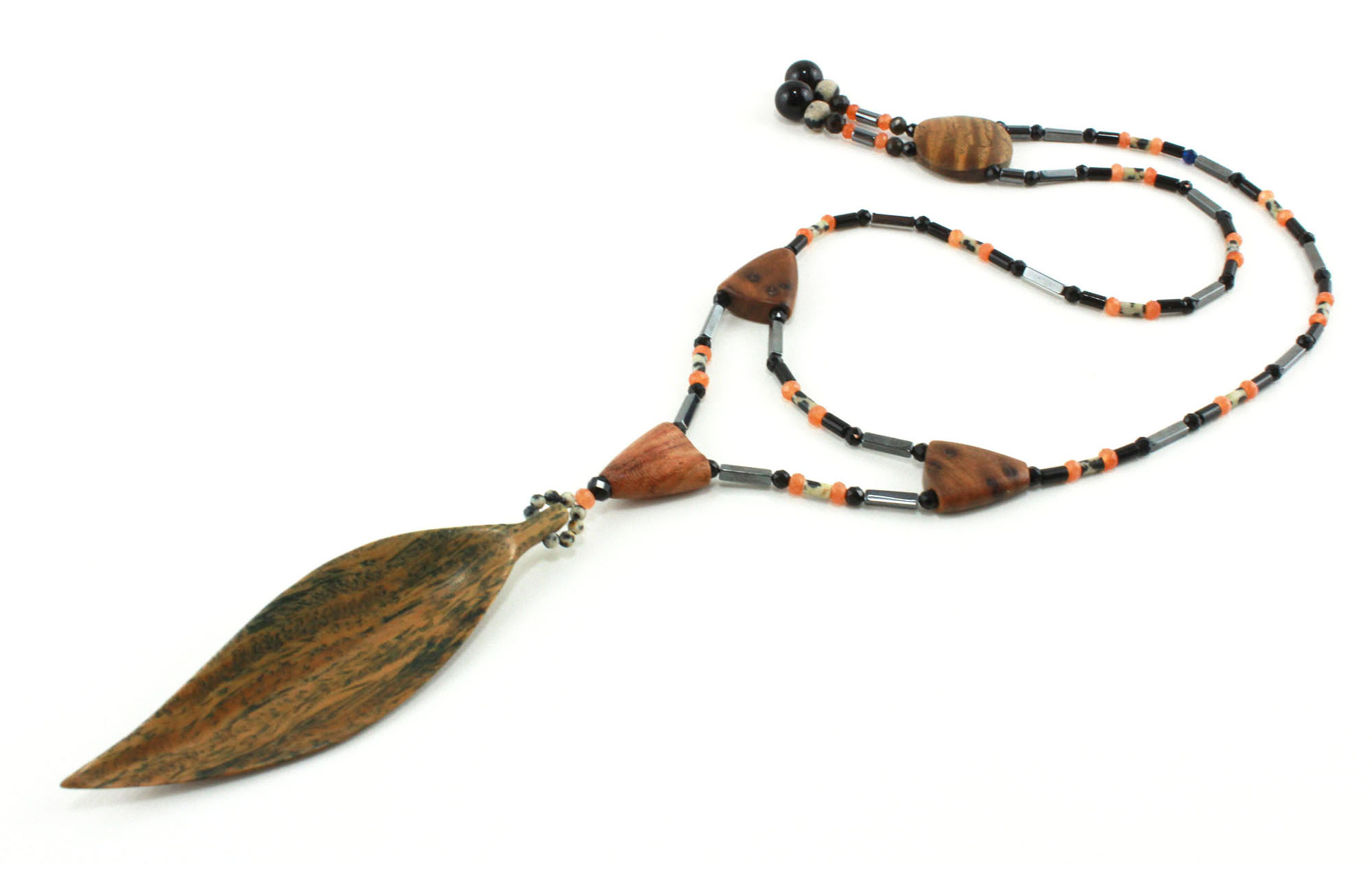 Collier tendance artisanal sculpté dans des bois exotiques – Bijou artisanal en bois sculpté